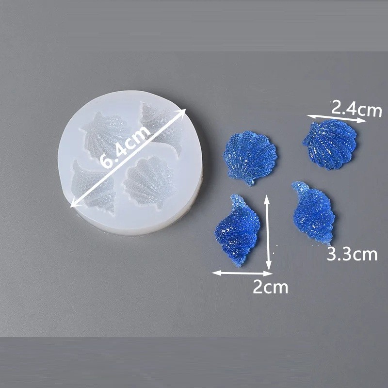 Runde Silikonform 6,4 x 6,4 x 1,2 cm Vier Muschelformen zum Gießen von Harz, Seife, Gips, Wachs und Dekorationen