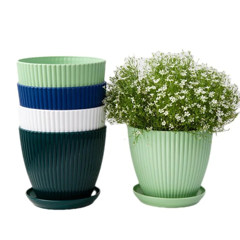 Das Material des Blumentopfs besteht aus robustem Harz, das leicht, stabil und gleichzeitig widerstandsfähig gegen Beschädigungen ist. Der Blumentopf ist für Innen- und Außenanwendungen konzipiert, sodass Sie ihn bedenkenlos in verschiedenen Umgebungen platzieren können. Dank seiner Konstruktion bietet er den Pflanzen Stabilität und optimale Wachstumsbedingungen. Die Oberfläche des Blumentopfs ist zudem feuchtigkeitsbeständig und widerstandsfähig gegenüber Temperaturschwankungen, was langfristige Wetterbeständigkeit gewährleistet. Der praktische Untersetzer hilft außerdem, die Sauberkeit zu wahren und die Pflege der Pflanzen zu erleichtern.