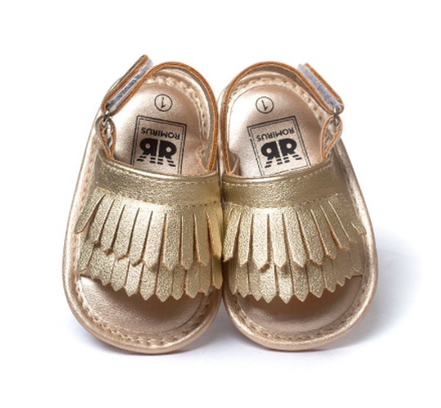 Schöne moderne Sandalen sind eine ideale Wahl für Kleinkinder im Kinderwagen.