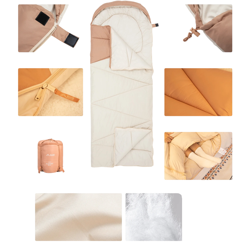 Der Schlafsack ist eine großartige Wahl für jeden, der während des Campings oder anderer Outdoor-Aktivitäten nach qualitativ hochwertigem und komfortablem Schlaf sucht. Seine Füllung aus Hohlfaserbaumwolle und die Verwendung von hochwertigem Polyester gewährleisten eine lange Lebensdauer und Komfort. Geeignet für verschiedene Temperaturbedingungen zwischen 12 und 22 ℃, ist er der ideale Begleiter für alle, die die Natur ohne unnötigen Stress durch Unannehmlichkeiten genießen möchten.