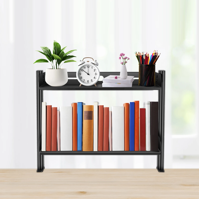 Startseite Startseite Haushalt Aufbewahrung und Organisation Regale Schwarzes 2-stufiges Regal 44 x 39 x 15,5 cm aus Kohlenstoffstahl mit Klemme für den Tischrand Metallorganisator für Monitor Bücher und Bürozubehör