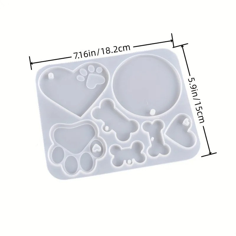 Silikonform für Harz für Güsse in Form von Herzen, Pfoten und Würfeln. Geeignet für die Herstellung von Anhängern, Untersetzern und Dekorationen. Vollständige Beschreibung