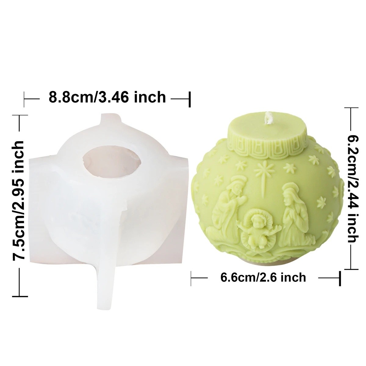 Silikonform für Kerzen 8,8 x 7,5 cm Weihnachtskugel mit Motiv der Heiligen Familie Form zum Gießen von Wachs, Harz, Seife und Dekorationen