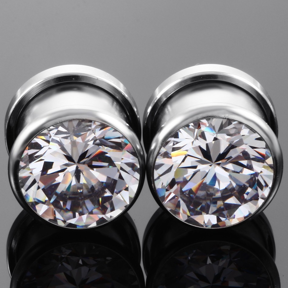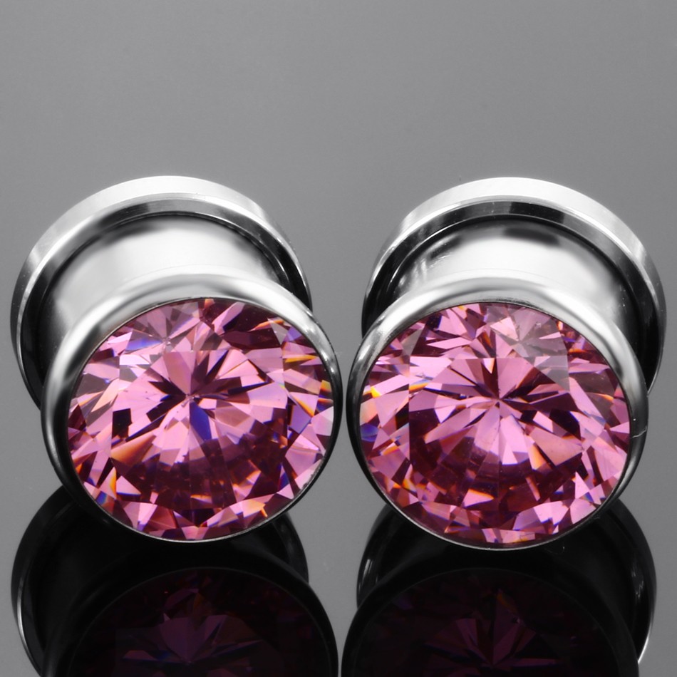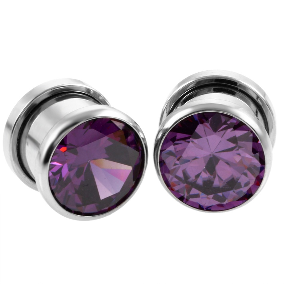 Einschraubbarer Stahlstopfen mit farbigen Steinen.