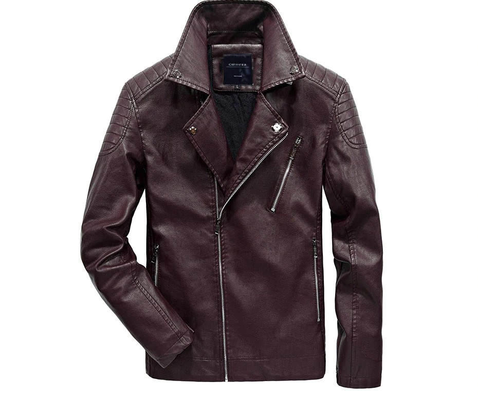 Seien Sie originell mit dieser stilvollen Kunstlederjacke.