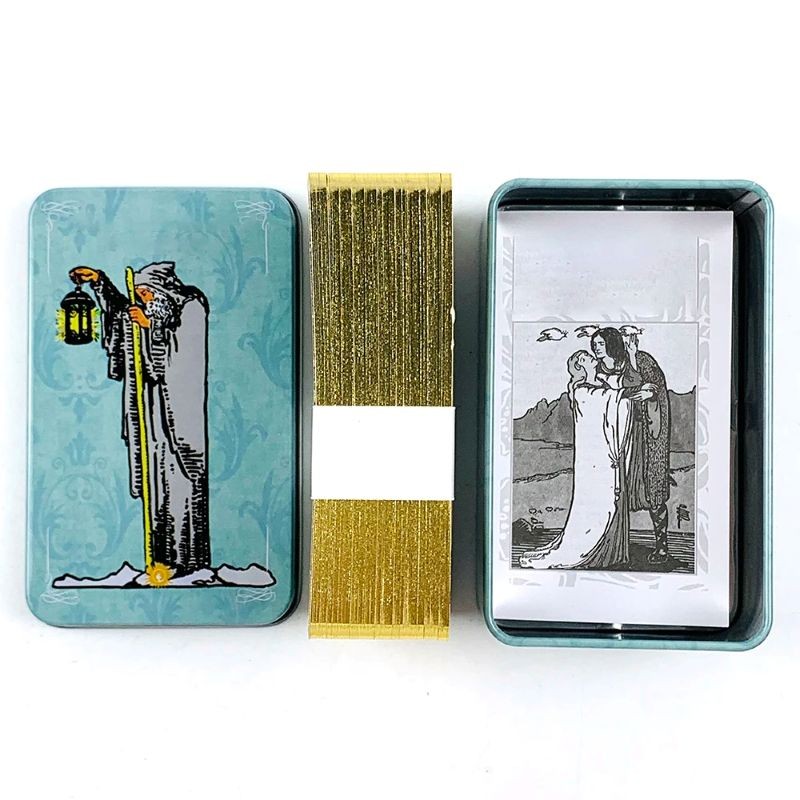 Startseite Startseite Alles für Kinder Kinderspielzeug Kartenspiele Tarotkarten mit Metallbox Set für Wahrsagerei 10,3 x 6,2 cm Metallgehäuse kompaktes Set für Tarotlegung