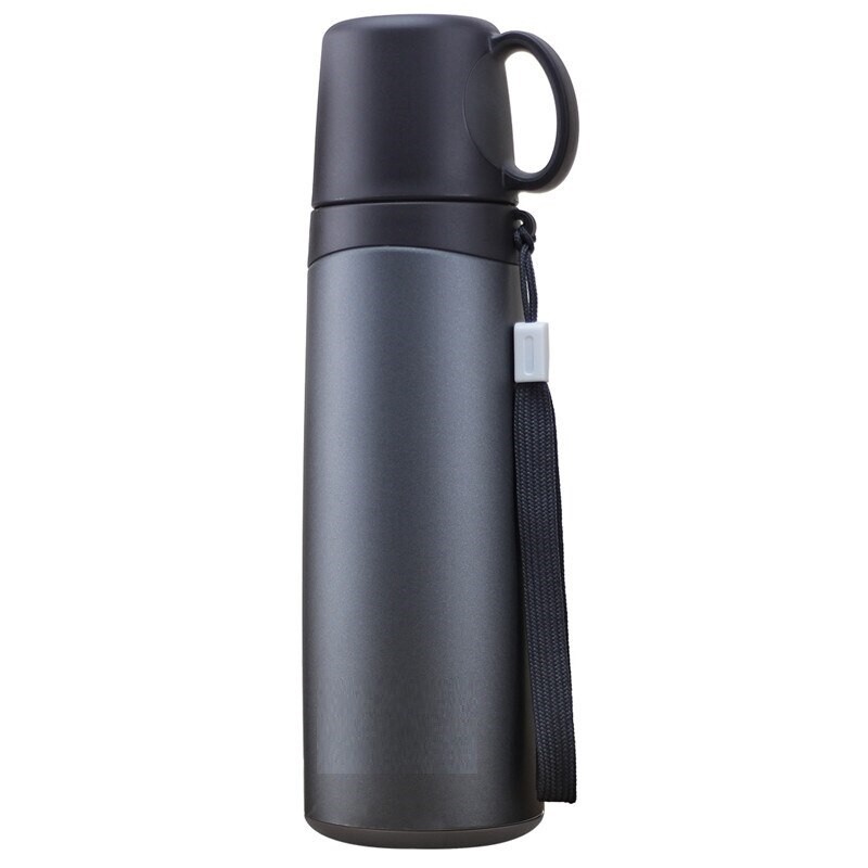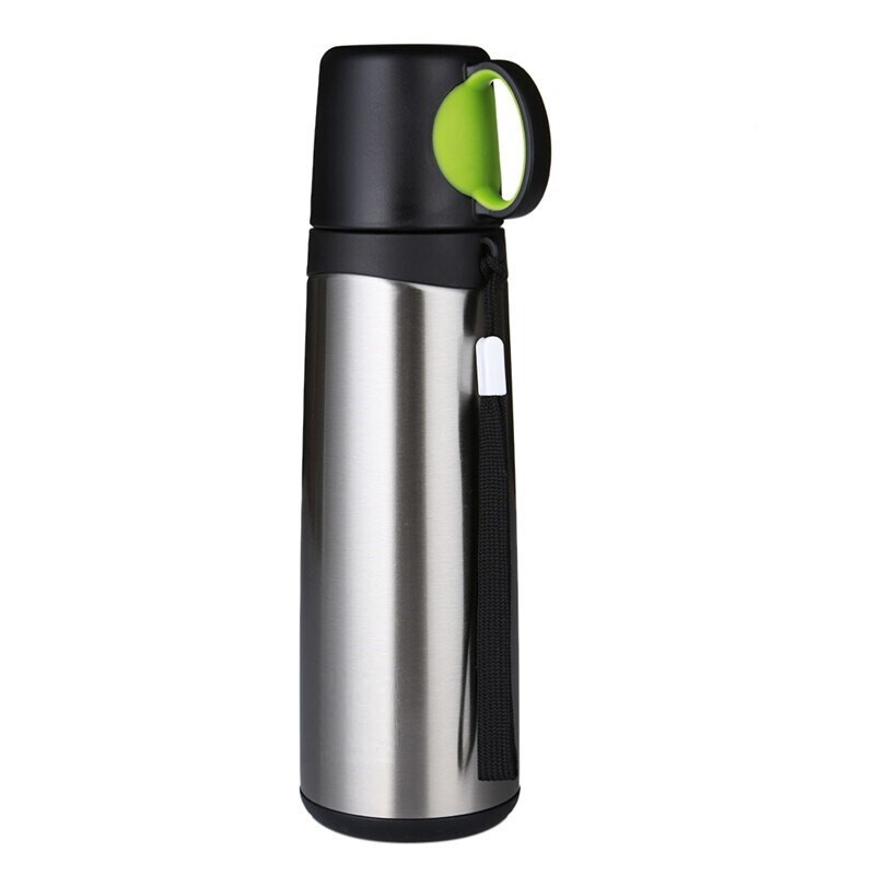 Die Isolierung besteht aus zwei Schichten. Es hält das Getränk bis zu 12 Stunden warm.