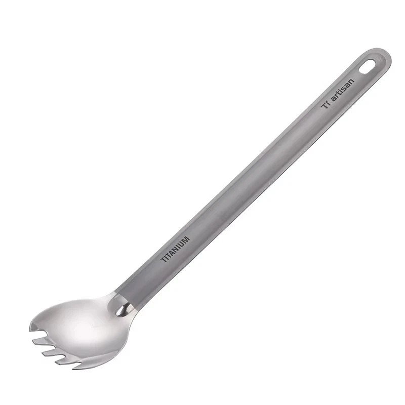 Titanlöffel mit langem Griff und Gabel ultraleichtes Campingbesteck aus Titan silberner tragbarer Touristenlöffel für das Camping