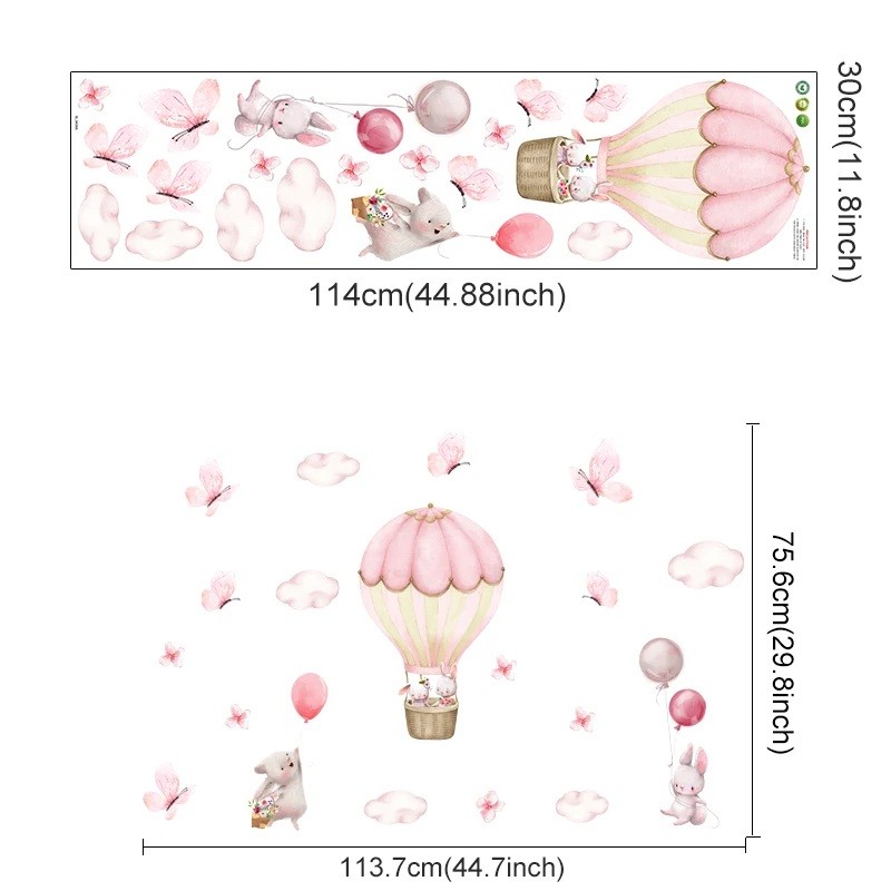- Das niedliche Motiv der Tiere im Ballon mit Schmetterlingen fördert die Fantasie der Kinder und die fröhliche Atmosphäre des Zimmers