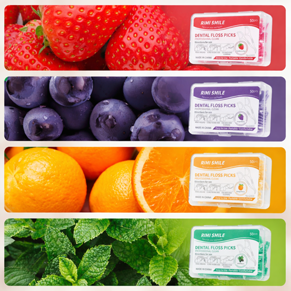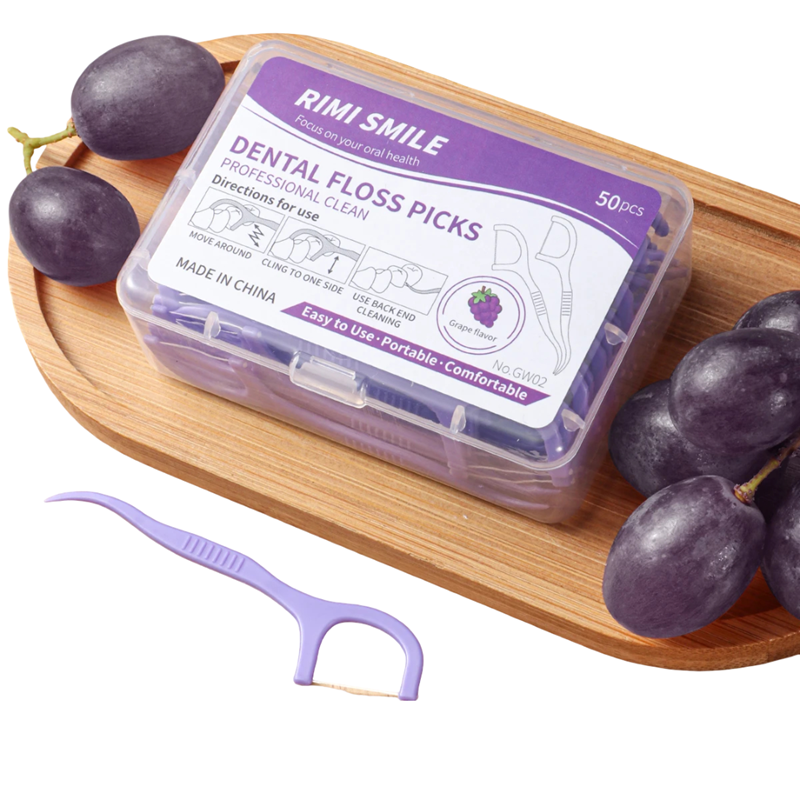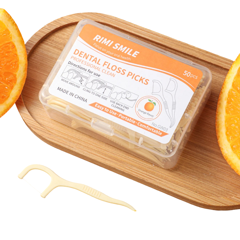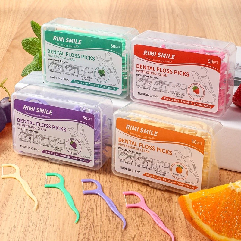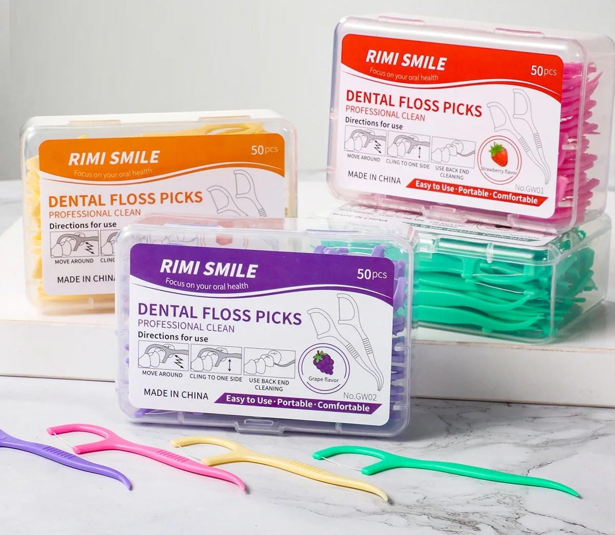 Zahnbürsten-Set mit Zahnseide und Zahnstocher 50 Stück 2in1 Halter mit Zahnseide Kunststoff farbige Box zur Reinigung der Interdentalräume